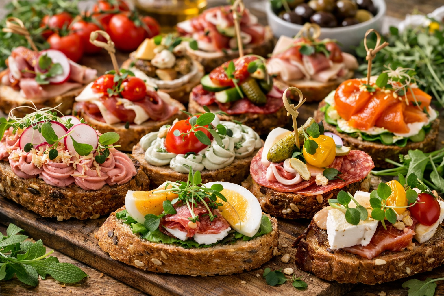 Smotanová kanapka – syr, olíva, saláma je pestrá a chuťovo bohatá jednohubka, ktorá ponúka dokonalú kombináciu…